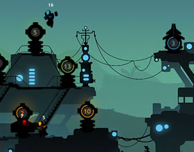 点からどんどん兵を送り出し、中立、敵対関係にある国の陣地を占領していくゲームだそうです。兵士を移動させるときは、移動元→移動先の拠点をマウスでドラッグ。○の中の数字が兵士の人数で、これをゼロにすると占領することができます。